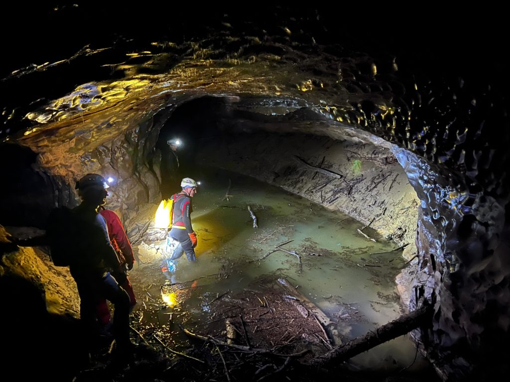 Aufsteigen und Abseilen ( auch in enge Spalten) und Klettersteigquerungen.Ach Schwitzen gehört zum Handwerk. Der Anzug ist eigentlich hellblau- und es war eine trocken Höhle